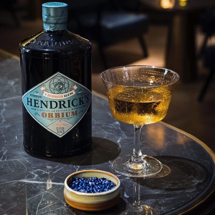 Hendrick’s Orbium Gin viene del latín y significa “círculo” la maestra destiladora Lesley Gracie describe el sabor redondo y esférico que caracteriza el estilo de Hendricks. Para su ginebra, Gracie optó por añadir quinina, ajenjo y brotes de loto azul a los ingredientes tradicionales con los que se elabora la ginebra Hendrick’s: pepino alemán y rosas búlgaras. El resultado es una ginebra compleja y brillante, caracterizada por notas amargas y florales y un final muy largo. La botella de Hendrick’s Orbium es la clásica botella de ginebra Hendrick’s, de estilo farmacéutico, pero con un color azul oscuro y el “ojo que todo lo ve”‘ en la etiqueta.